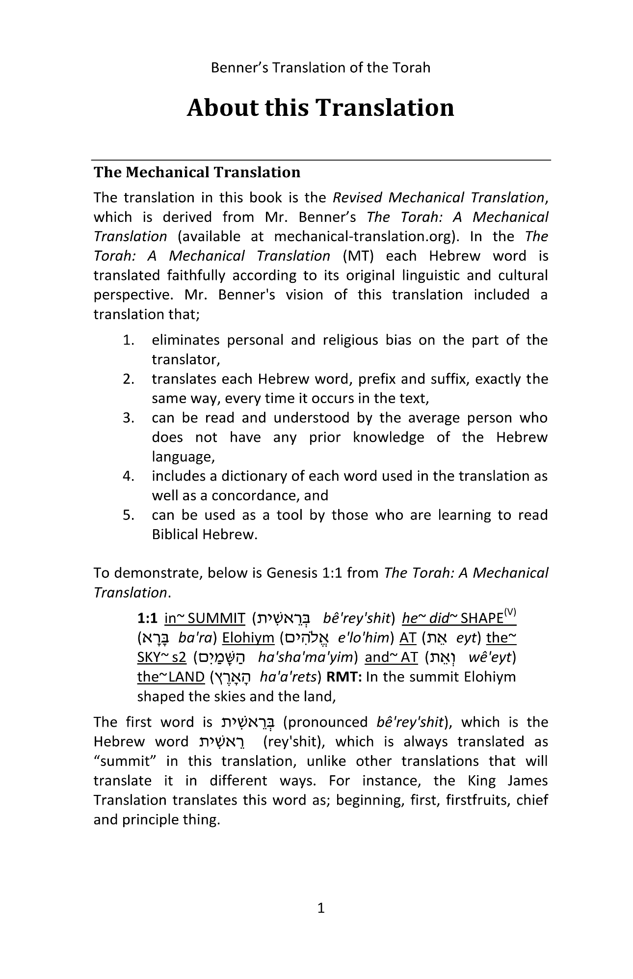 Book: Benner's Translation of the Torah