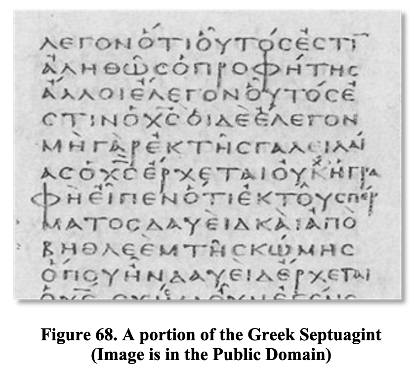 The Septuagint, the Greek translation of the first five books of the Hebrew Bible (see Figure 68), was written by Jewish scholars in the 3rd century BC. The remainder of the Hebrew Bible, the writings and the prophets, was translated into Greek by unknown translators between the 2nd and 1st centuries BC.