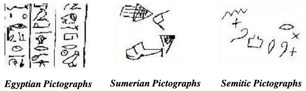The Egyptians, Sumerians, and Semites originally wrote with a pictographic (meaning picture writing) form of writing. Some believe that the Sumerians were the originator of writing, while others attribute it to the Egyptians. Both the Sumerians and Egyptians came into existence after the flood of Noah.